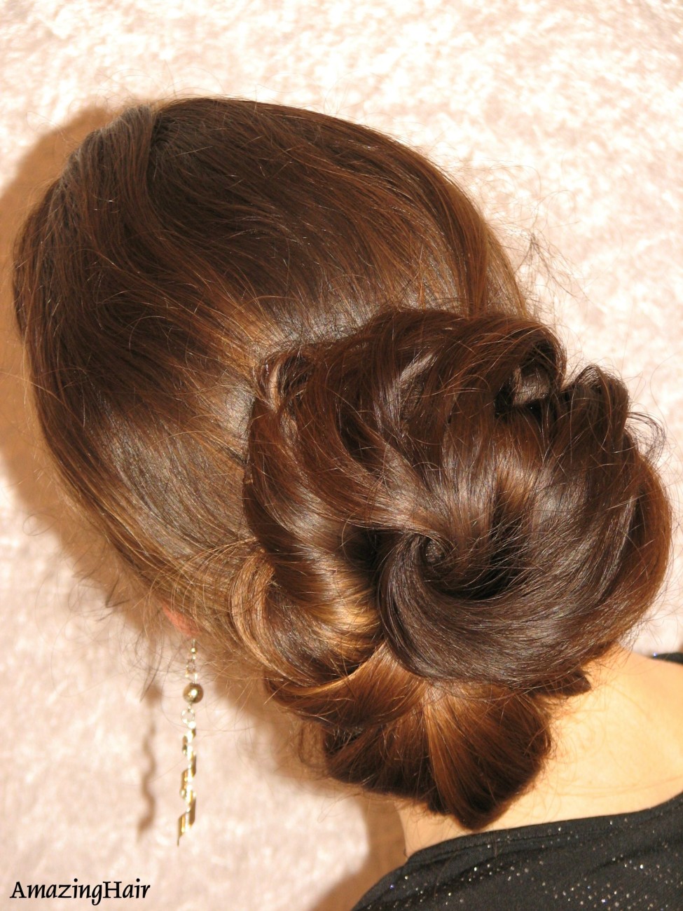 Her look combines timeless elegance with a bold statement: hair as art itself.